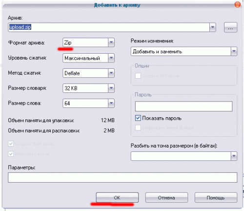 Поэтому чтобы быстро закачать эти 1024 файла, мы его для начала запакуем в архив ZIP (Важно! Запаковывать нужно именно в формате ZIP а не в другой).
