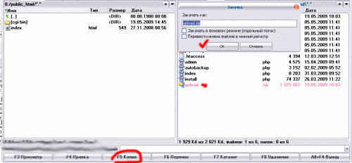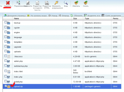 - Подключаемся к сепверу через через любой фтп клиент (к примеру Total Commander), закачиваем наш архив ZIP на сервер. Обратите внимание, что размер архива всего 2mb вместо четырех с половиной, что уже хорошо