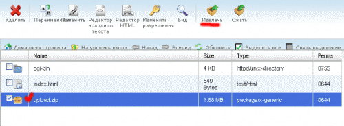 - Находим наш архив и ставим галочку напротив нашего архива и нажимаем извлечь